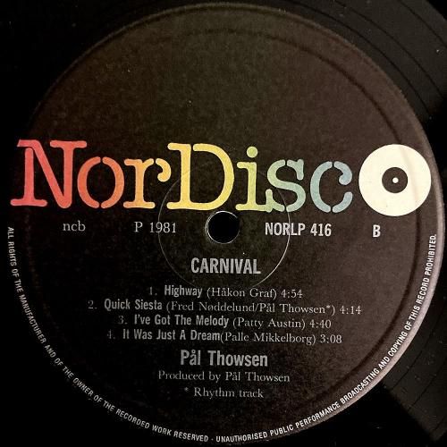 Arild Andersen とのカルテットや Ketil Bjørnstad との共演、 ジャズロックバンド Moose Loose での活動でも知られる、ノルウェー出身ドラマー Pal Thowsen の81年作。トランペット奏者 Palle Mikkelborg、鍵盤奏者 Hakon Graf なども参加。