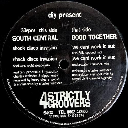 90年代ハウスシーンのUKキーパーソン Charles Webster のプロジェクトによる93年作。UKノッティンガム地下ハウス集団 DiY Discs 絡みのレーベル Strictly 4 Groovers よりリリース。低空グルーヴからハードシンセのダンサブルなリフ、ヴォイスを絡めて Plastic Dreams のような異世界感 A1「South Central / Shock Disco Invasion」、跳ねつつスラミンなグルーヴにポジティヴ抜けなB1「Good Together / (We Can) Work It Out (Carefully Spaced Mix)」など全4曲。Charles Webster らしい落ち着きと外さないツボを得たサウンドメイク光る1枚。初期らしいUSインフルエンスが見えるのも○。UK盤。