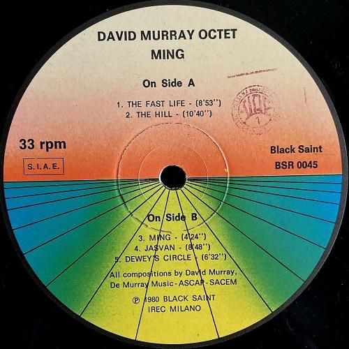 USテナー巨匠 David Murray による、フロント5管でピアノトリオなオクテット編成作品。80年作、伊名門 Black Saint からのリリース。タイトル「Ming」は Charles Mingus を仄めかしてる?とはいえ真意は不明。
