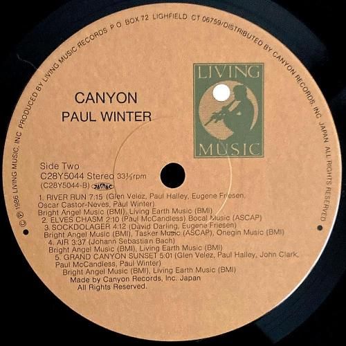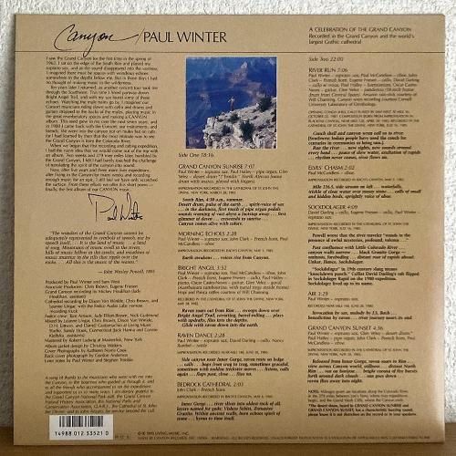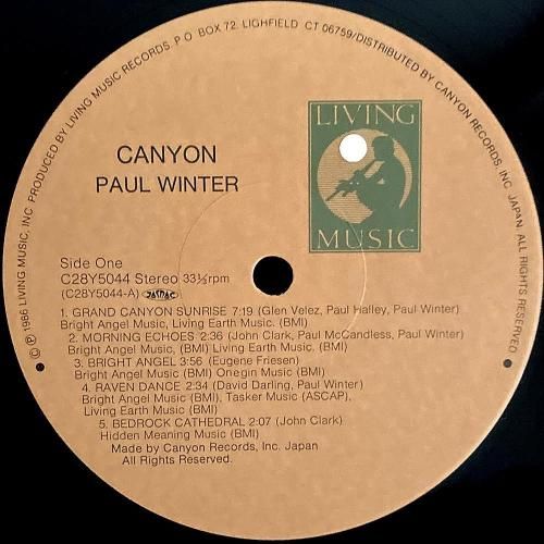 USサックスプレイヤー Paul Winter の85年作。自身のレーベル Living Music からのリリース。フルート奏者 John Clark、オーボエ奏者 Paul McCandless、鍵盤 Paul Halley、チェリスト David Darling、フレームドラム奏者 Glen Velez などジャズ/コンテンポラリー色濃い面々が参加。なんと グランド・キャニオンの側渓や洞窟などでのナチュラルアンビエンスを使ったライブ録音盤。壮大。