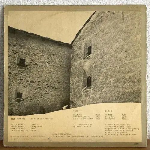 巧みなハットワークから始まり、タイトル通り空気に溶けていくようにより深く潜る名曲A1「Melting」、繊細なギターとECMらしい叙情な空間美A2「Not Forgettin」、サックスとギターが静かに溶けるA3「Face In The Water」など全6曲。美しく内省的。ドイツ盤。スリーヴの使用感ダメージあり、若干のディスカウント。