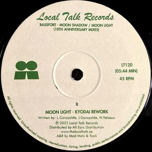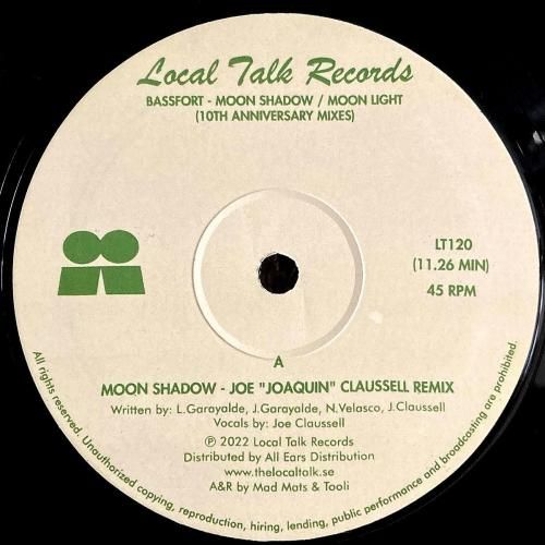 スペインのディープハウスユニット Bassfort の楽曲を、NYプロデューサー Joaquin "Joe" Claussell と、ベルリンのユニット Kyodai がそれぞれリミックスした一枚。ストックホルムの優良レーベル Local Talk が手がけた、10周年記念シリーズの一作です。A面「Moon Shadow (Joe "Joaquin" Claussell Remix)」は、シンプルでダンサブルなキックから始まり、徐々にピアノが壮大なスケールで広がっていく、Joe らしいドラマティックな構築が魅力。AA面「Moon Light (Kyodai Rework)」は、生音寄りの質感を活かしたジャズファンク風のフィーリングが心地よい仕上がりで、フロアでも家でも馴染む万能タイプです。スウェーデン盤。