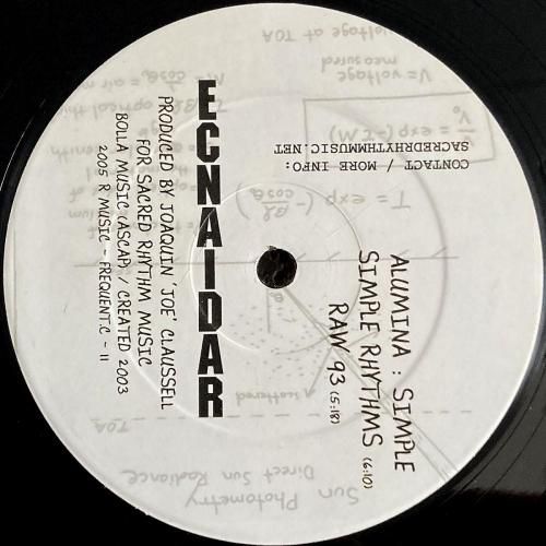 NYのプロデューサー Joaquin "Joe" Claussell によるプロジェクト Alumina の2005年作。リリースは、Sacred Rhythm Music のサブレーベル Radiance から。Joe らしいパーカッシヴなビートにリズミカルなフルートが重なり、ドラマティックに展開していく A「Simple (Simplimental)」、生のバスドラのような柔らかいキックを使い、ロングミックス向けの構成で仕上げられた B2「Raw 93」など、全3曲を収録。USプレスです。