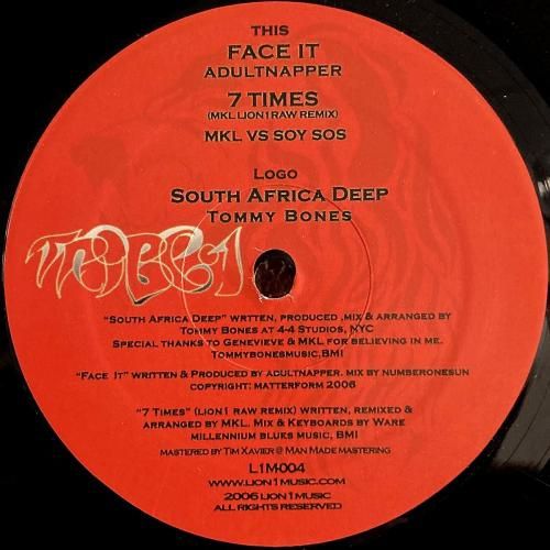 NYのレーベル Lion1Music から2007年にリリースされた、3組のアーティストによるEP。Aにはベテランプロデューサー Tommy Bones が手がける、サイバーテックな質感をまとったアフリカングルーヴ「South Africa Deep」を収録。B2には、幻想的なヴォーカルにパーカッションが映える MKL vs. Soy Sos「7 Times (MKL Lion1Raw Remix)」など、全3曲をラインナップ。NYの伝統をしっかり受け継ぎながら、新しいエッジも感じさせる1枚。USプレスです。